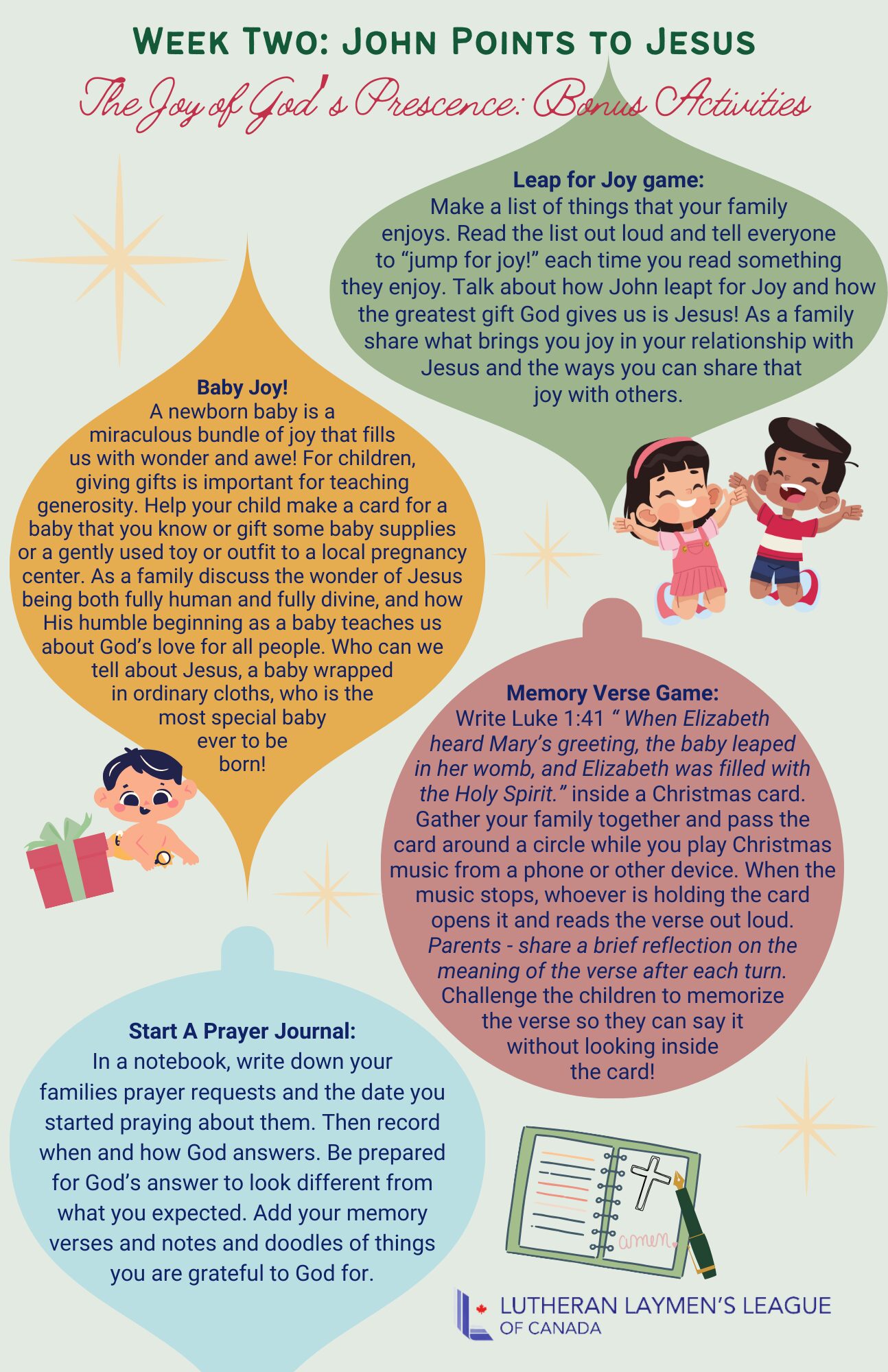 The Lutheran Laymen's League of Canada is continuing to offer a family devotional to help prepare young and old for the arrival of the Christ child. This resource is a great way to share the joy of advent with your child or grandchild!