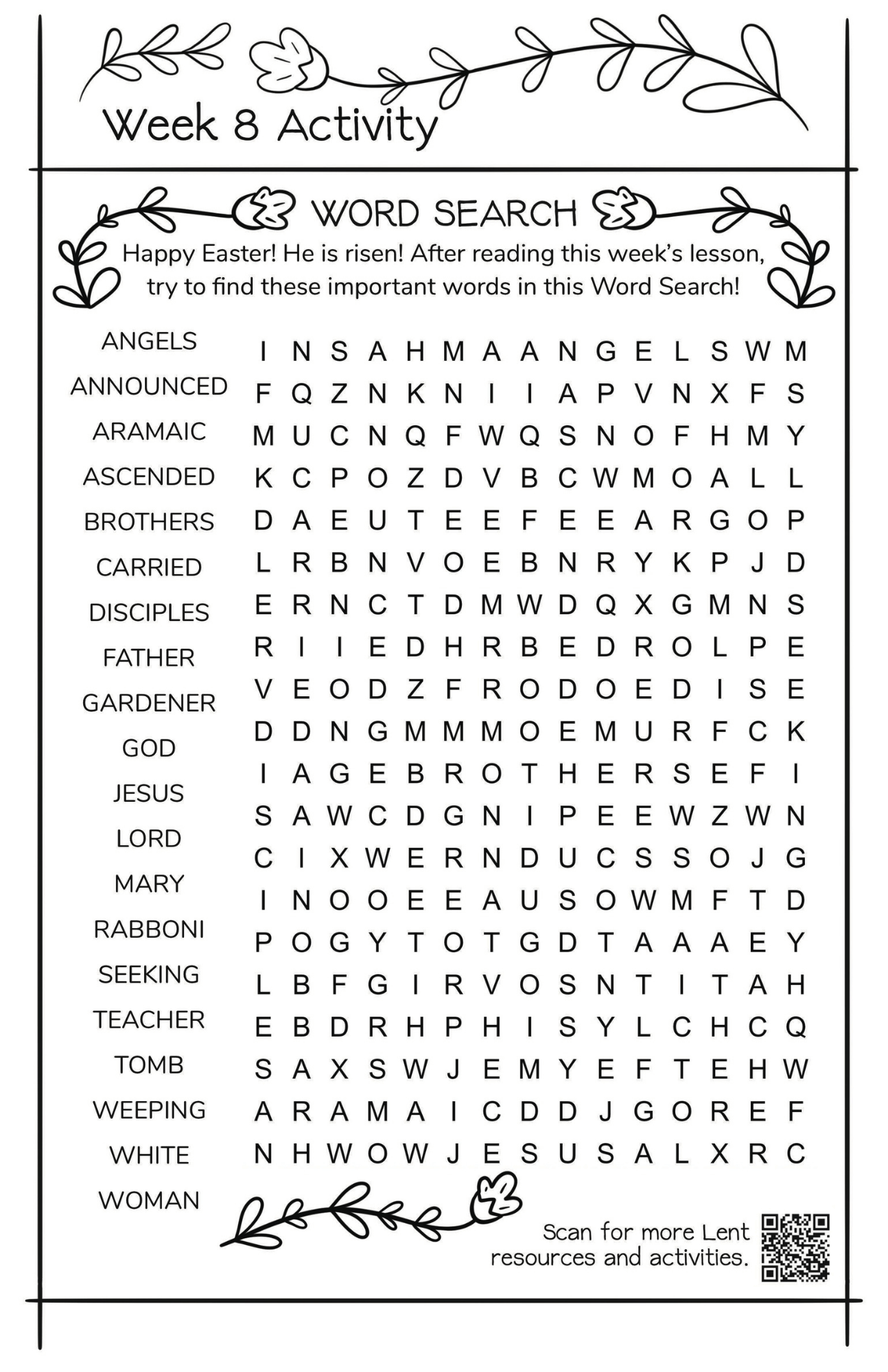 Week Eight Activities: Easter