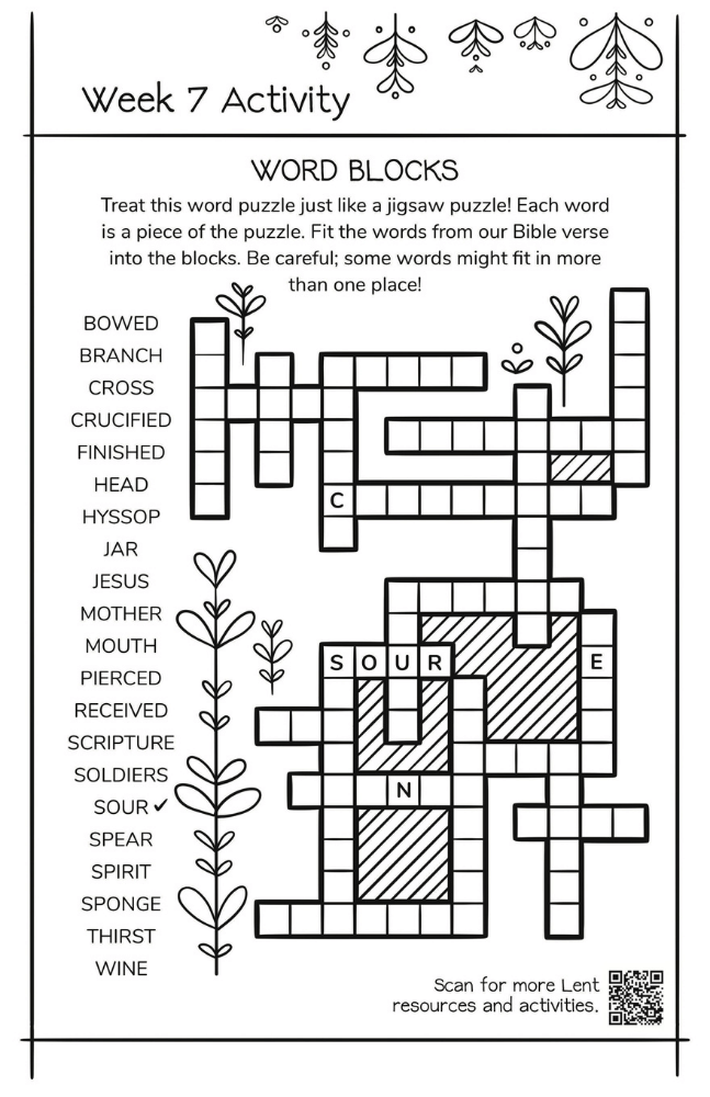 Week Six Activities: 5th Wednesday in Lent